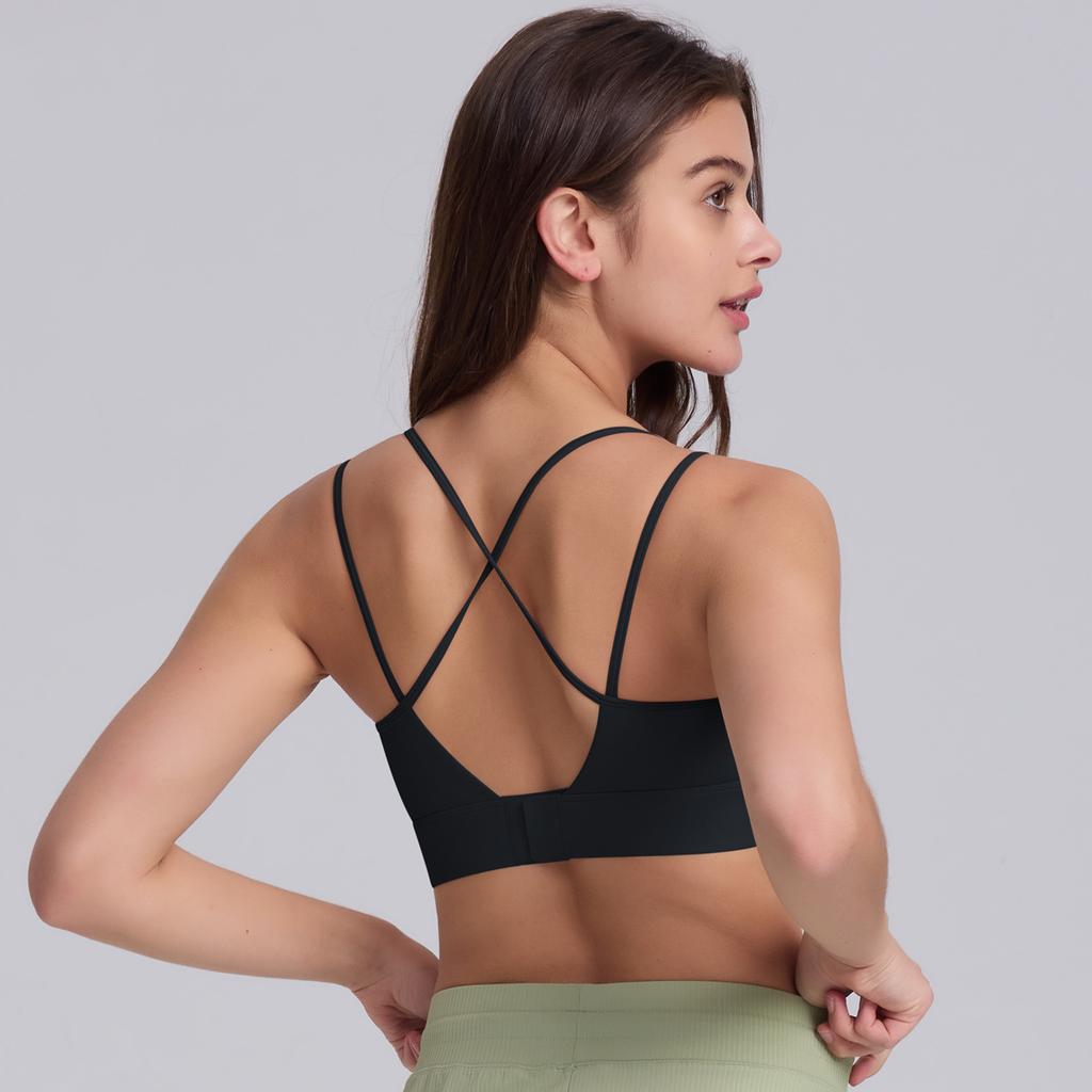 Однотонный плотный двухсторонний нейлоновый спортивный бюстгальтер с перекрестной спинкой для бега, спорта, фитнеса, йоги, одежды для женщин