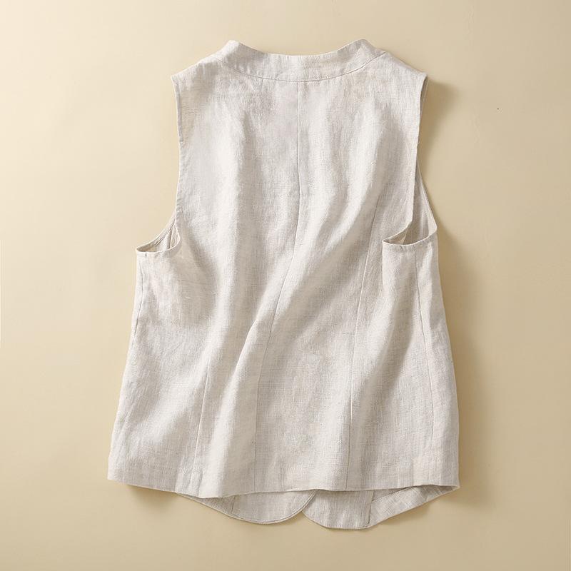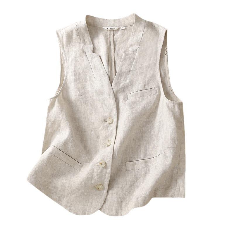 Летняя литература свободный однотонный хлопок лен жилет женский пальто верх Куртки и пальто женские