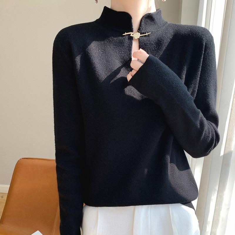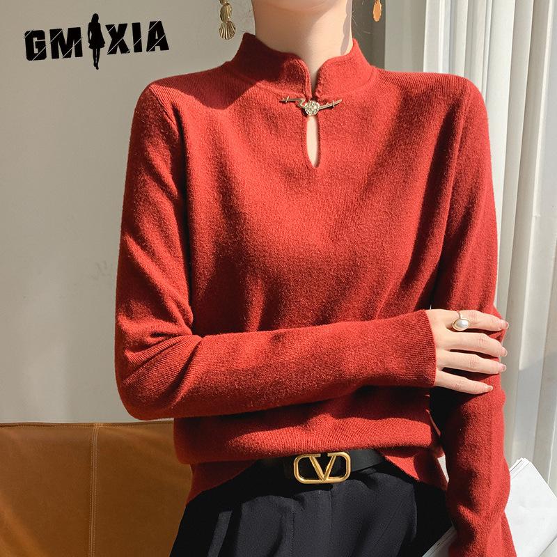 GMXIA Трикотажная рубашка с воротником-стойкой и длинными рукавами, женский джемпер с полувысоким воротом, тонкий теплый внутренний джемпер, красивые топы
