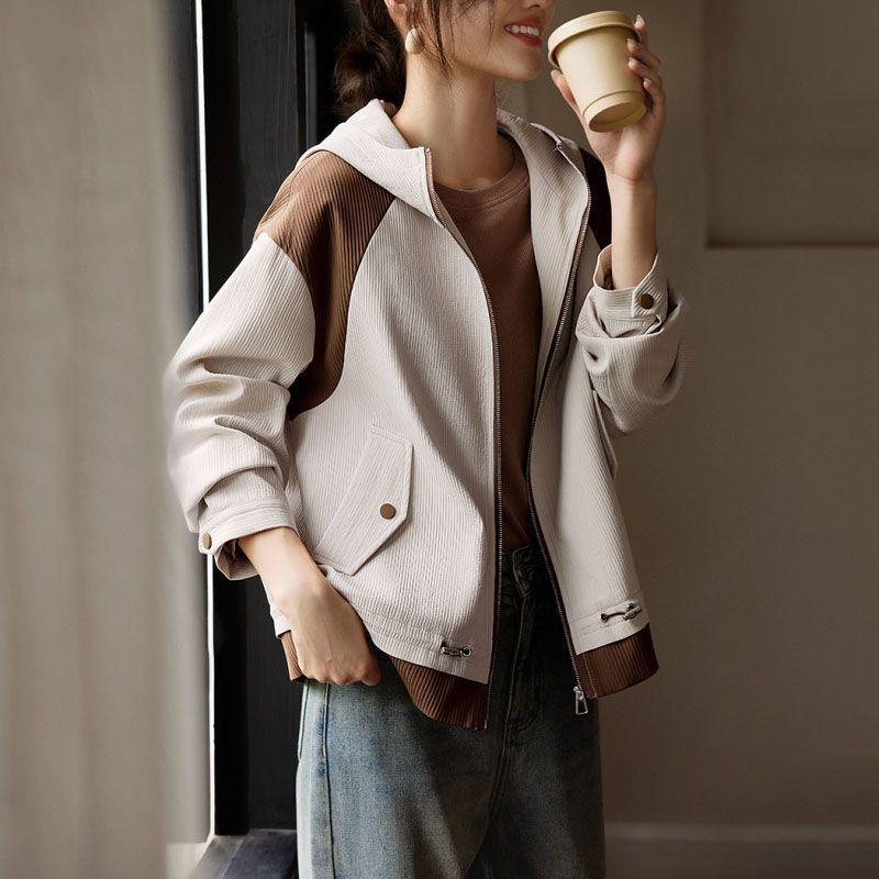 Осенний must-have: Модная и утягивающая куртка больших размеров с капюшоном и цветным дизайном для женщин — купить товар онлайн с бесплатной доставкой до всему миру!