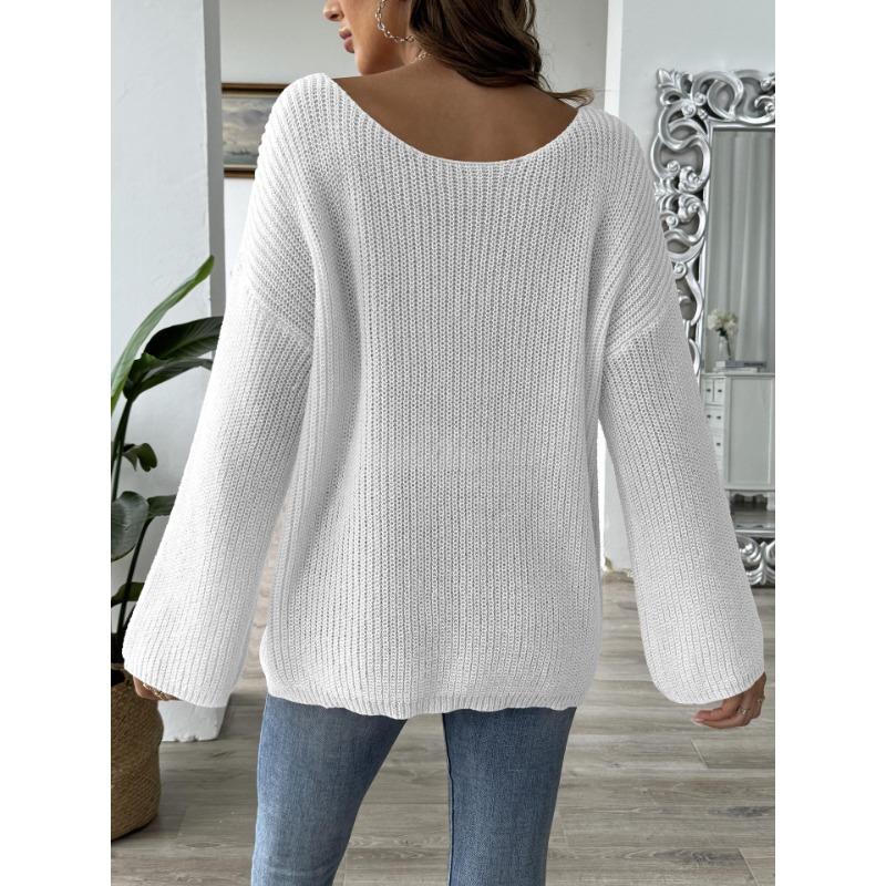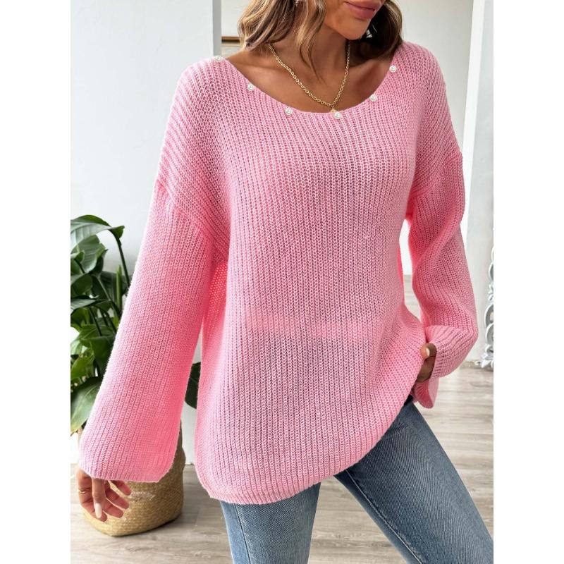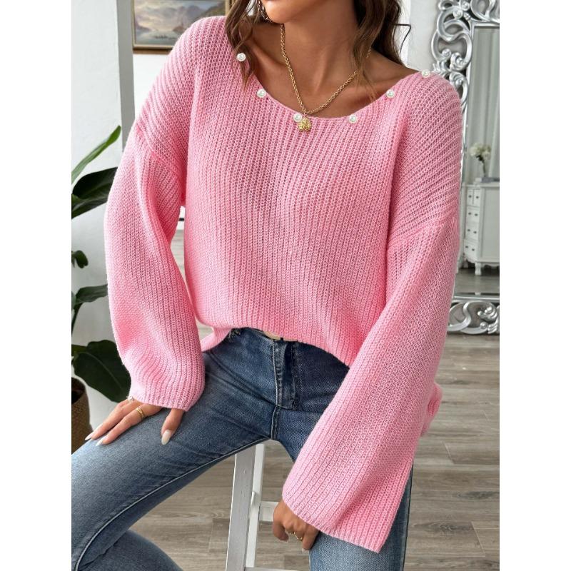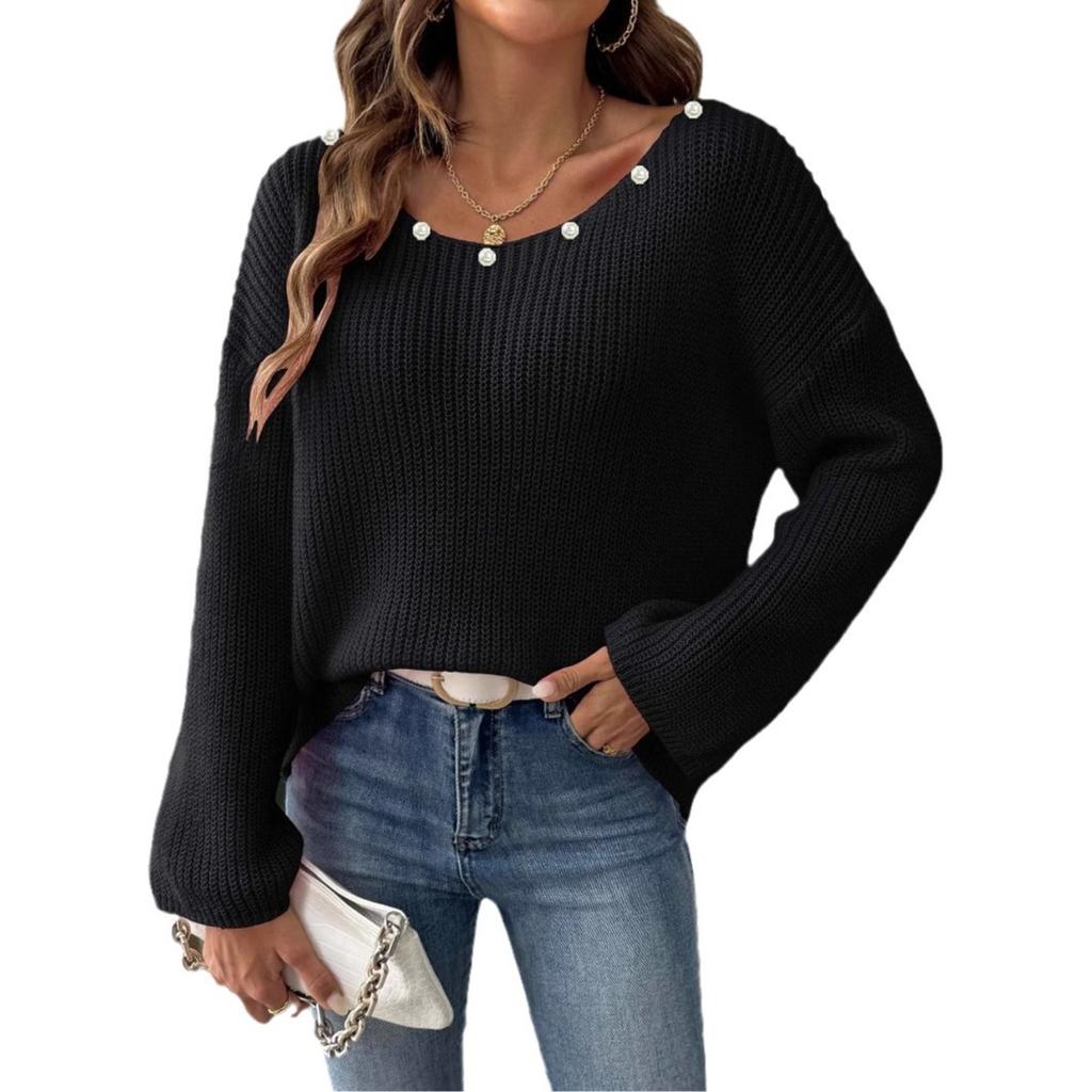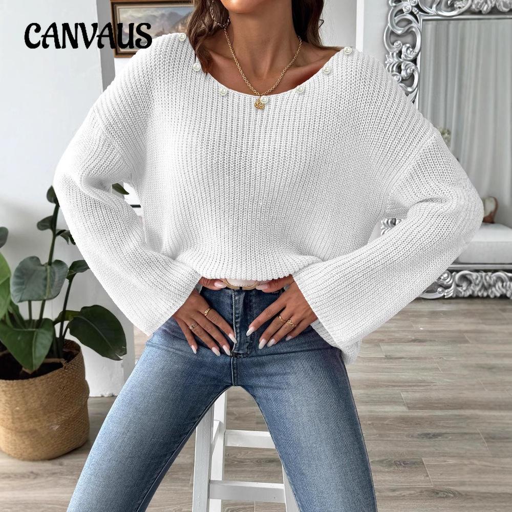 Женский свитер больших размеров с бисером, простой свободный свитер с одним вырезом без бретелек и расклешенными рукавами