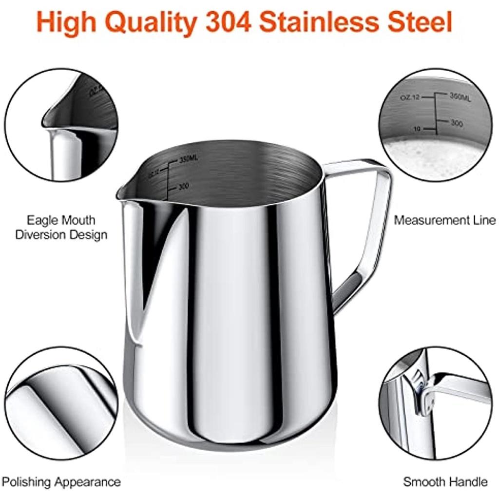 Молочник 350 мл 304 для молока, пены, молока, с отметкой размера 12 унций, кофейный набор для капучино, эспрессо, латте-арта, идеально подходит для любителей кофе
