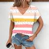 Минималистичный летний высококачественный полосатый узор с принтом, новая футболка, яркий уличный женский топ с V-образным вырезом и короткими рукавами