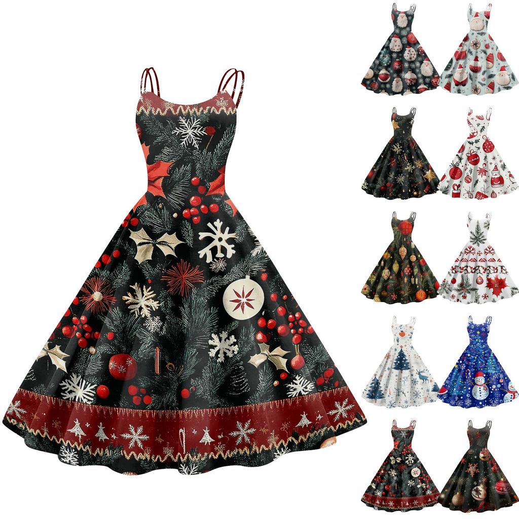 Женское модное рождественское принтованное сексуальное коктейльное платье без бретелек в готическом стиле в стиле панк, винтажное платье.