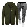Мужская осенне-зимняя однотонная толстовка с длинным рукавом на молнии с капюшоном и брюками