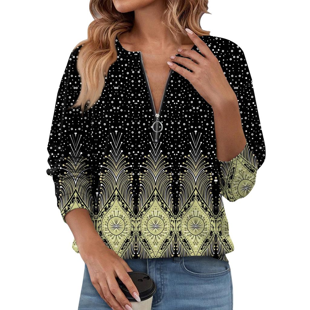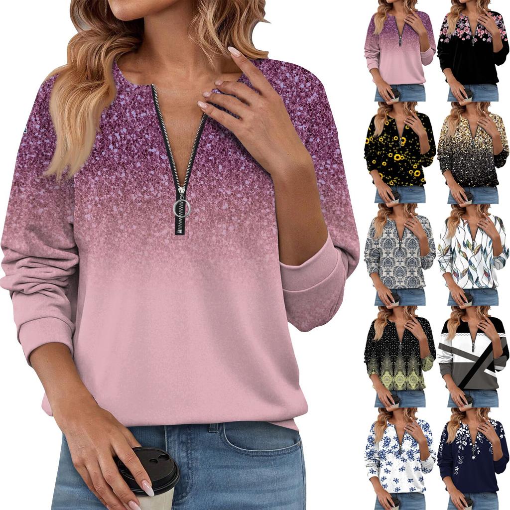 Женский повседневный свитер с длинным рукавом, на молнии, с принтом цветов, свитшот, повседневная верхняя одежда на осень
