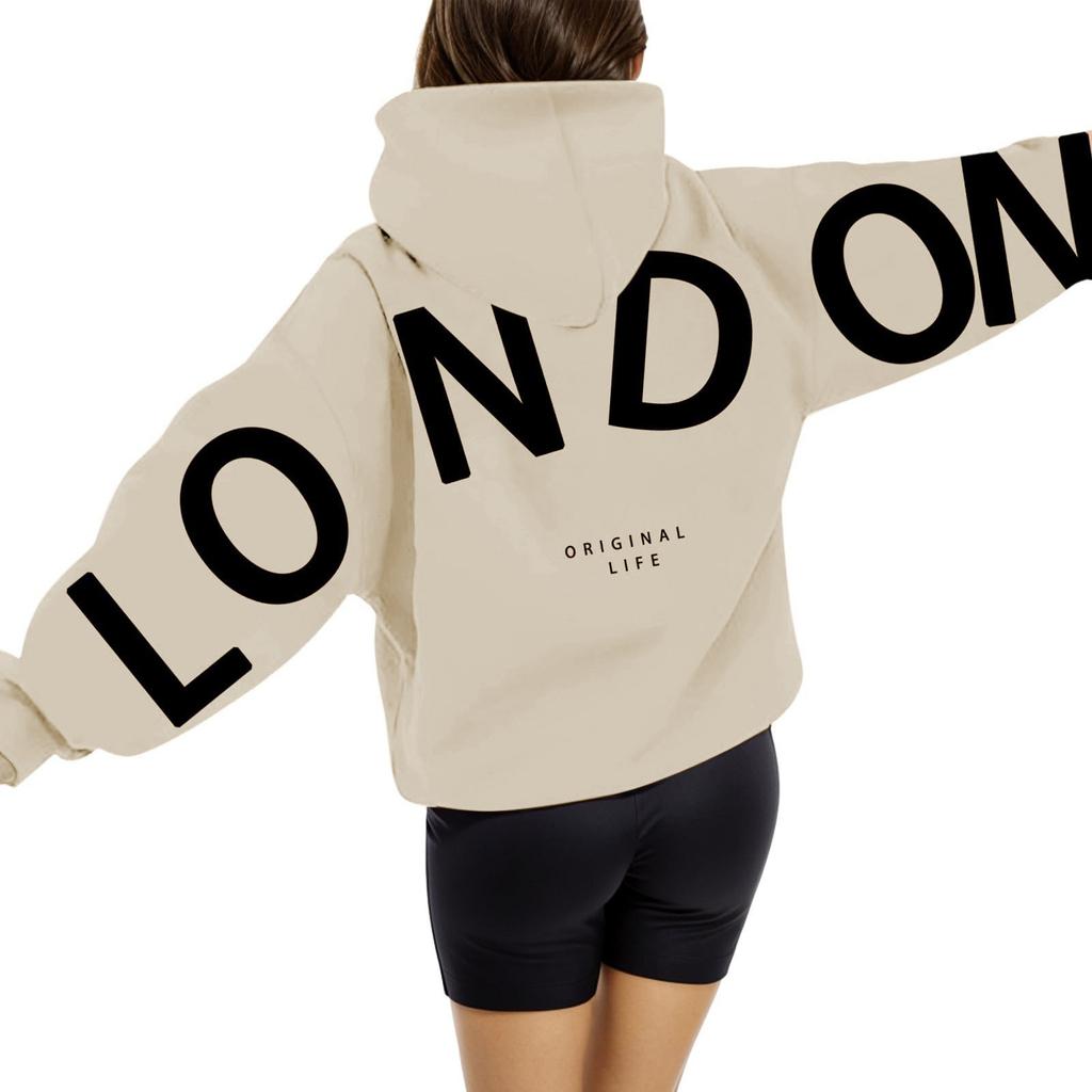 Женский спортивный костюм с принтом букв, повседневная толстовка с капюшоном и длинными рукавами