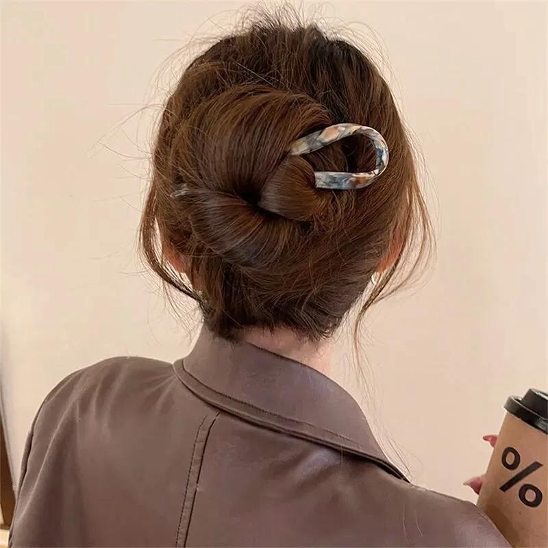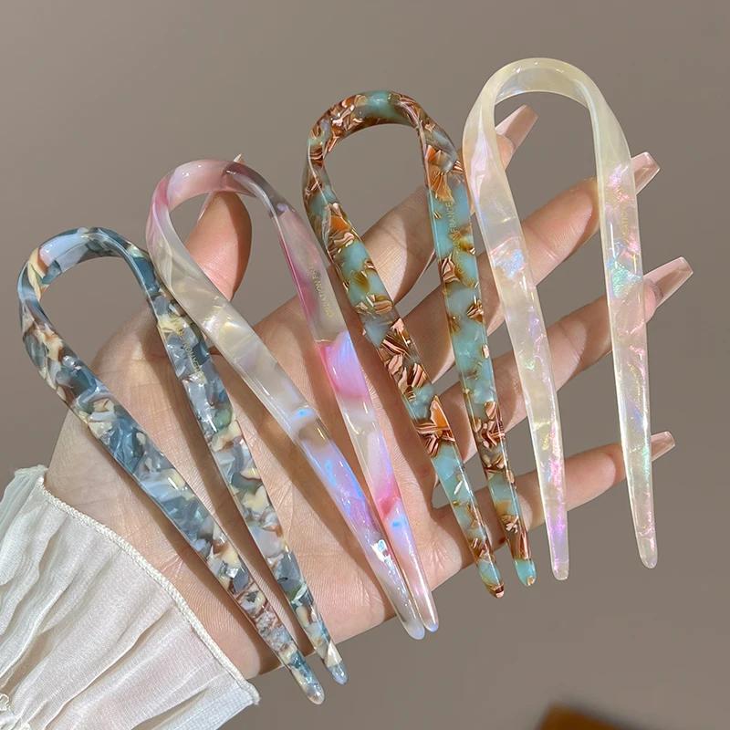 Ацетатный леопардовый принт геометрическая палочка для волос простая U-образная женская заколка для волос китайские элегантные ретро спиральные аксессуары для укладки волос