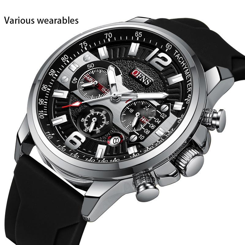 Часы кварцевые мужские часы календарь светящийся указатель водонепроницаемый силиконовый мужские деловые часы