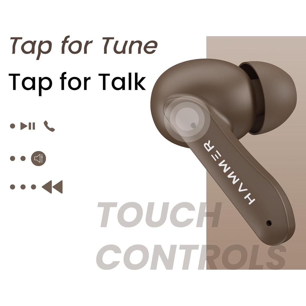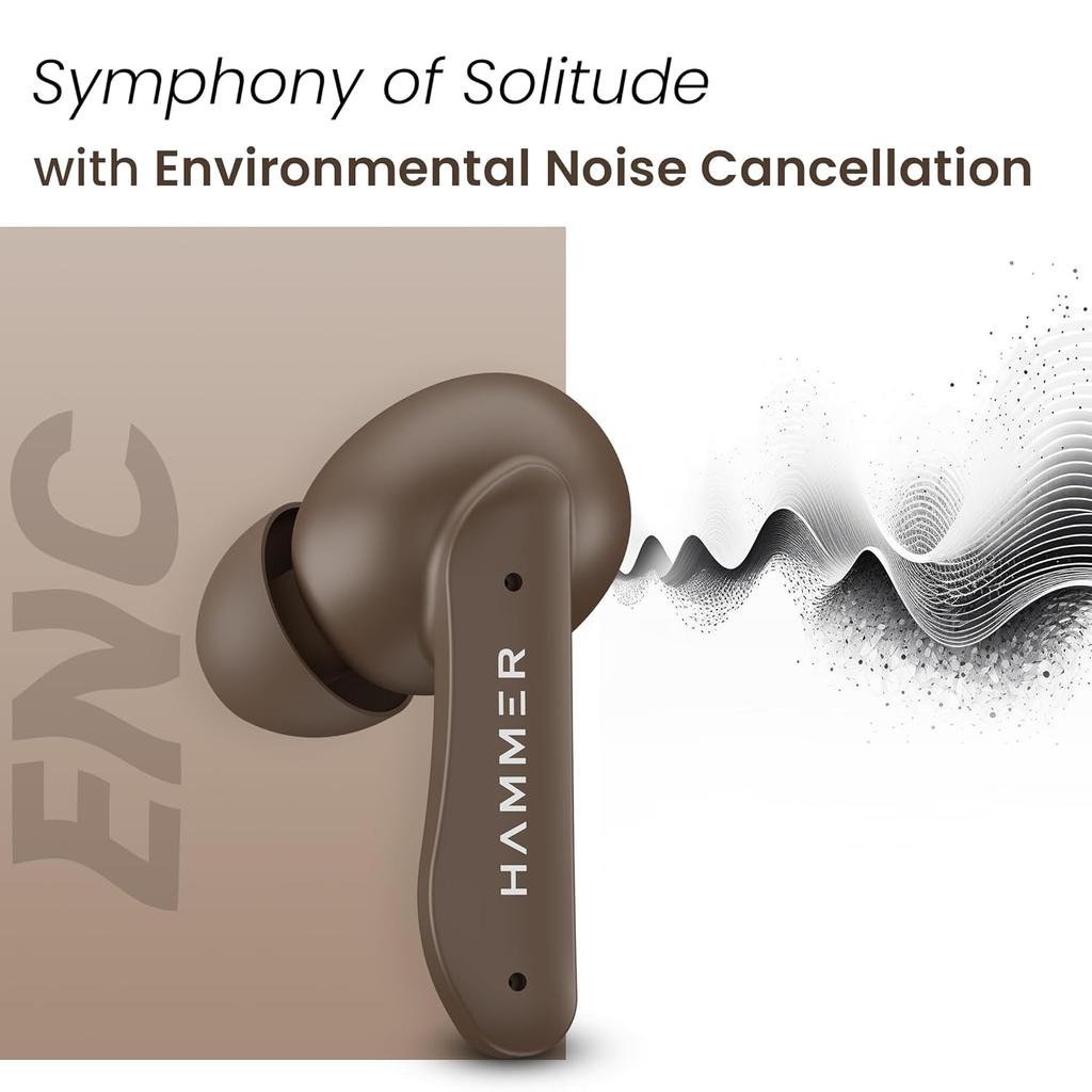 Наушники-вкладыши Hammer Solitude Bluetooth с временем работы до 22 часов, ENC, быстрой зарядкой Type-C, водонепроницаемостью IPX4, Bluetooth v5.3, сенсорным управлением и голосовым помощником (Мокко Браун)
