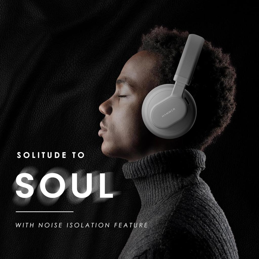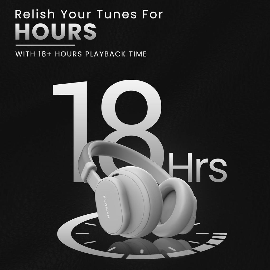 Hammer Bash Max Over The Ear Беспроводные Bluetooth-наушники с микрофоном, сенсорным управлением, глубокими басами, до 18 часов воспроизведения, Bluetooth 5.3(Холодный серый)
