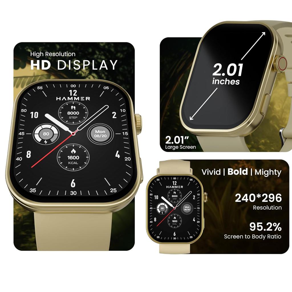 2,01-дюймовый HD-дисплей. Hammer Tussle — это смарт-часы с 1,96-дюймовым HD-дисплеем, которые обеспечивают четкое изображение и легкий доступ.
