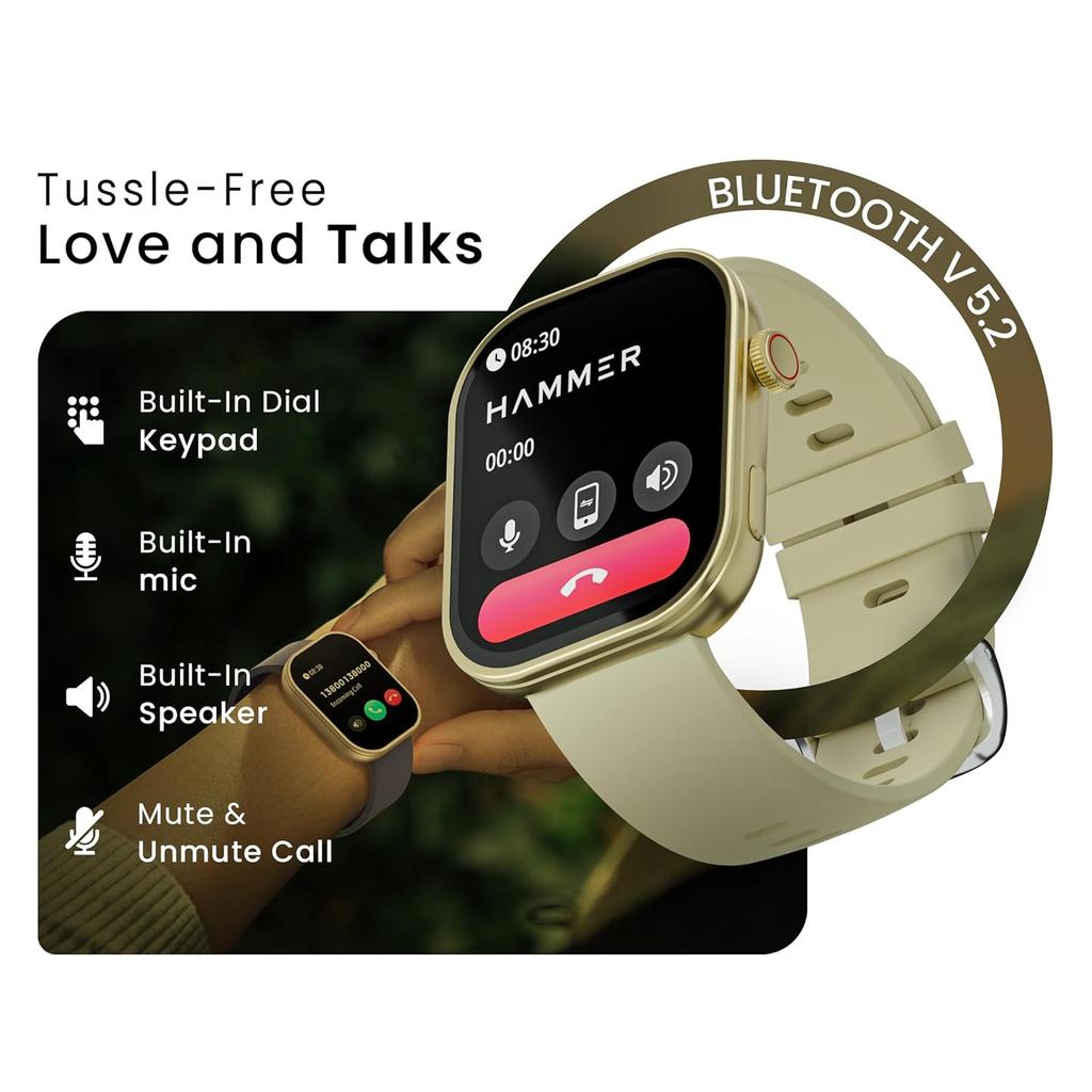 Умные часы Hammer Tussle с дисплеем HD 2,01 дюйма, вызовы по Bluetooth, вращающаяся заводная головка, голосовой помощник, встроенные игры, интеллектуальные уведомления, спортивный режим, функция «Не беспокоить», функция «Поднять для активации» (Шампанское золото)