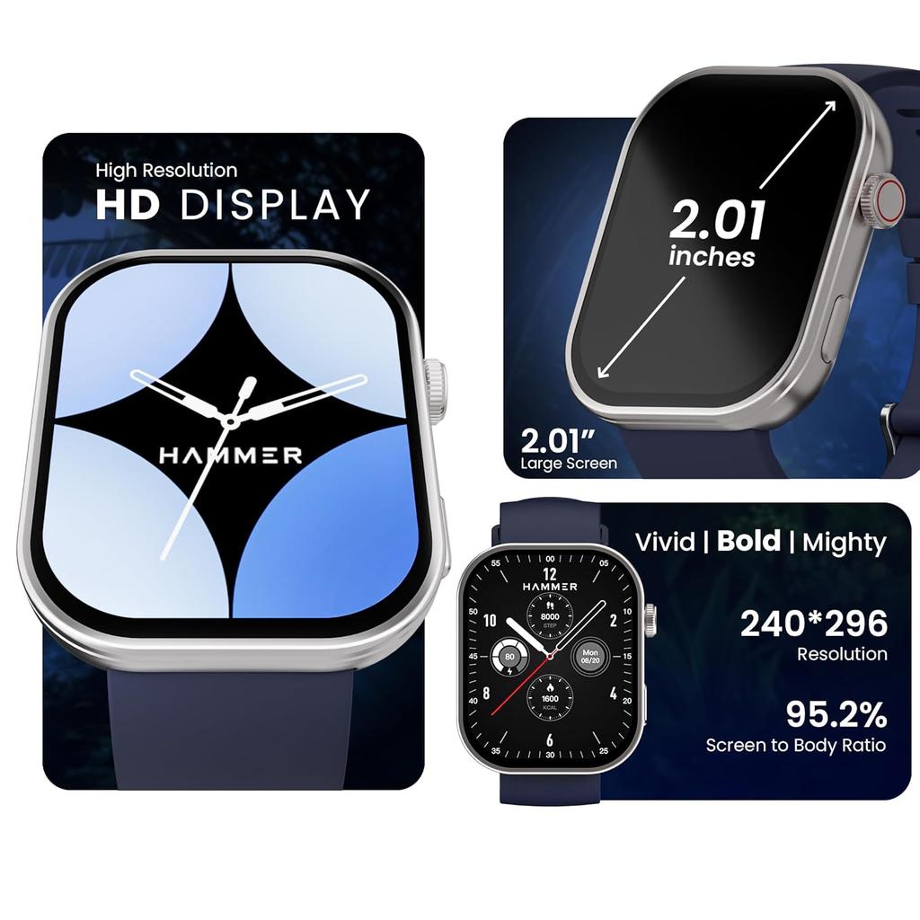 2,01-дюймовый HD-дисплей. Hammer Tussle — это смарт-часы с 1,96-дюймовым HD-дисплеем, которые обеспечивают четкое изображение и легкий доступ.