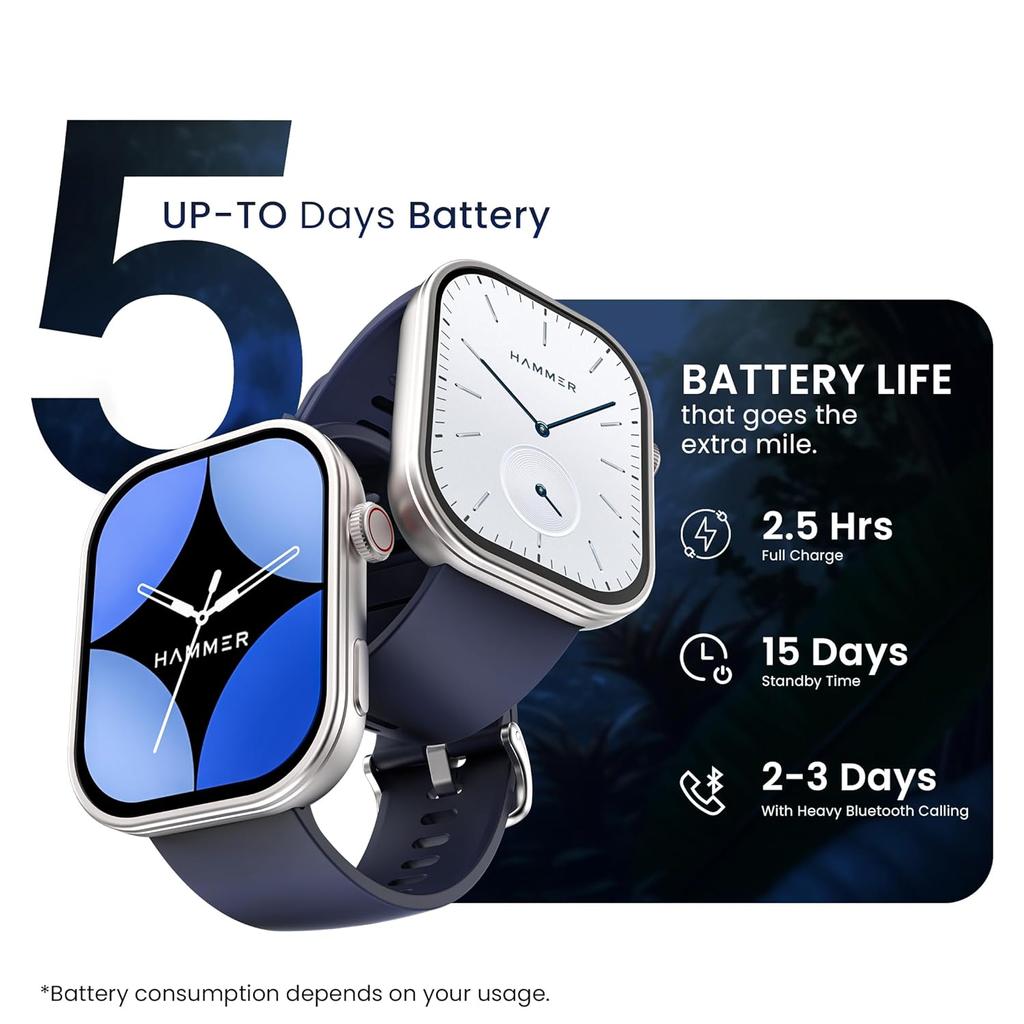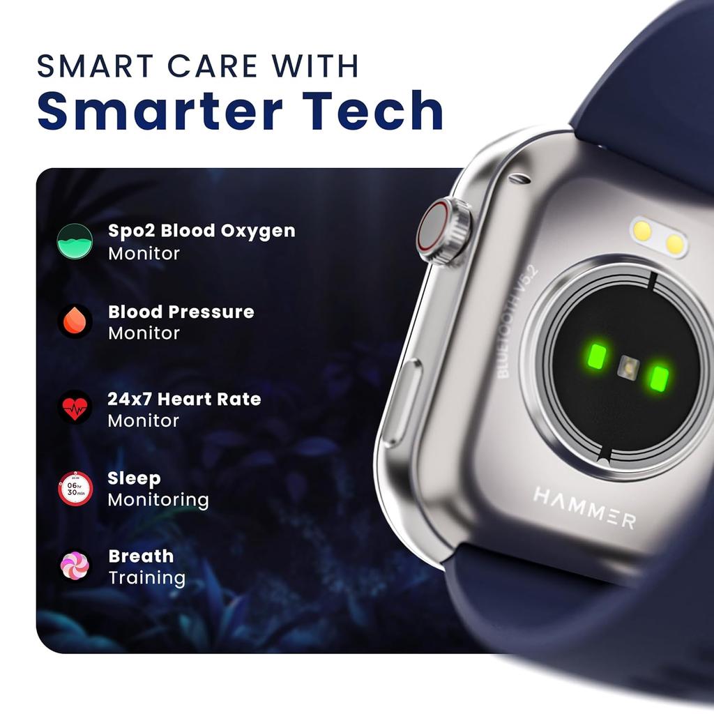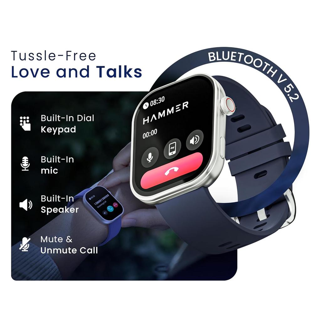 Смарт-часы HAMMER Tussle с 2,01-дюймовым HD-дисплеем, вызовы по Bluetooth, вращающаяся заводная головка, голосовой помощник, встроенные игры, интеллектуальные уведомления, настраиваемые циферблаты, спортивный режим, функция «Не беспокоить», функция «Поднять для пробуждения» Admiral Blue