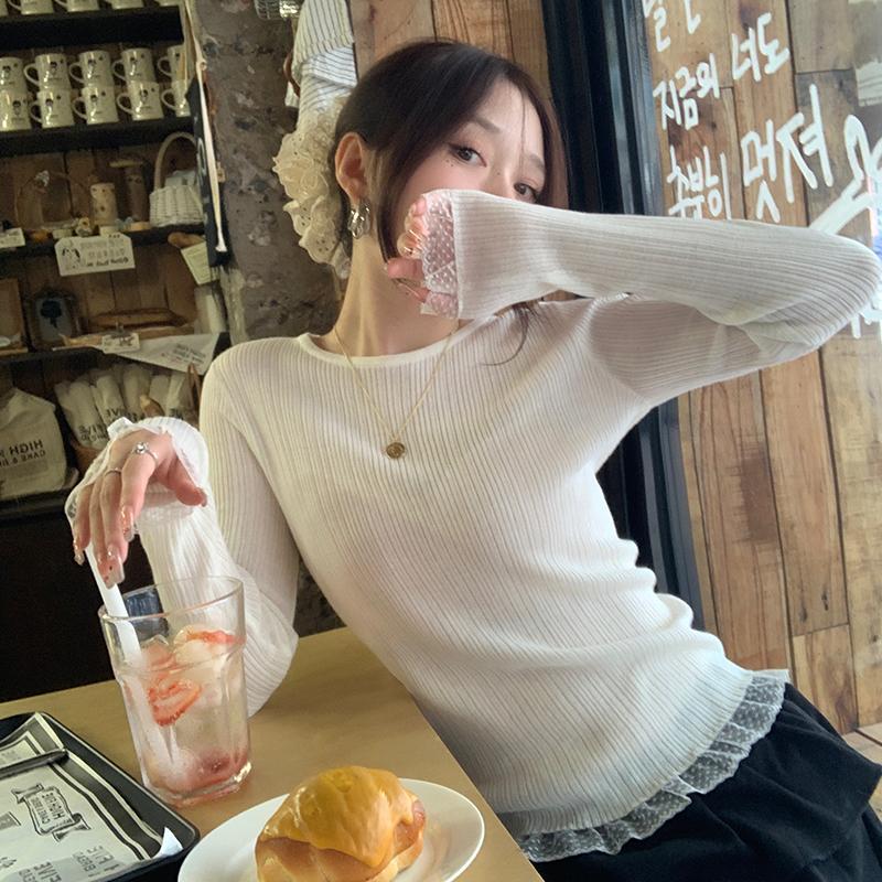 Осень-зима базовый вязаный свитер для женщин кружевной однотонный модный повседневный трикотаж женская одежда облегающий круглый вырез пуловер свитера женские топы 31035
