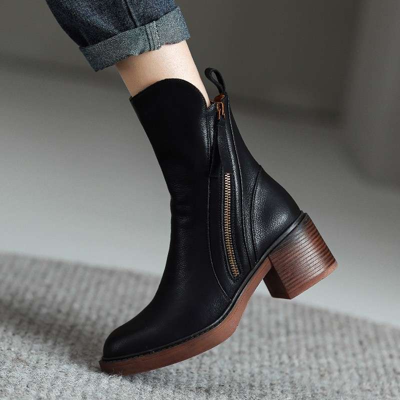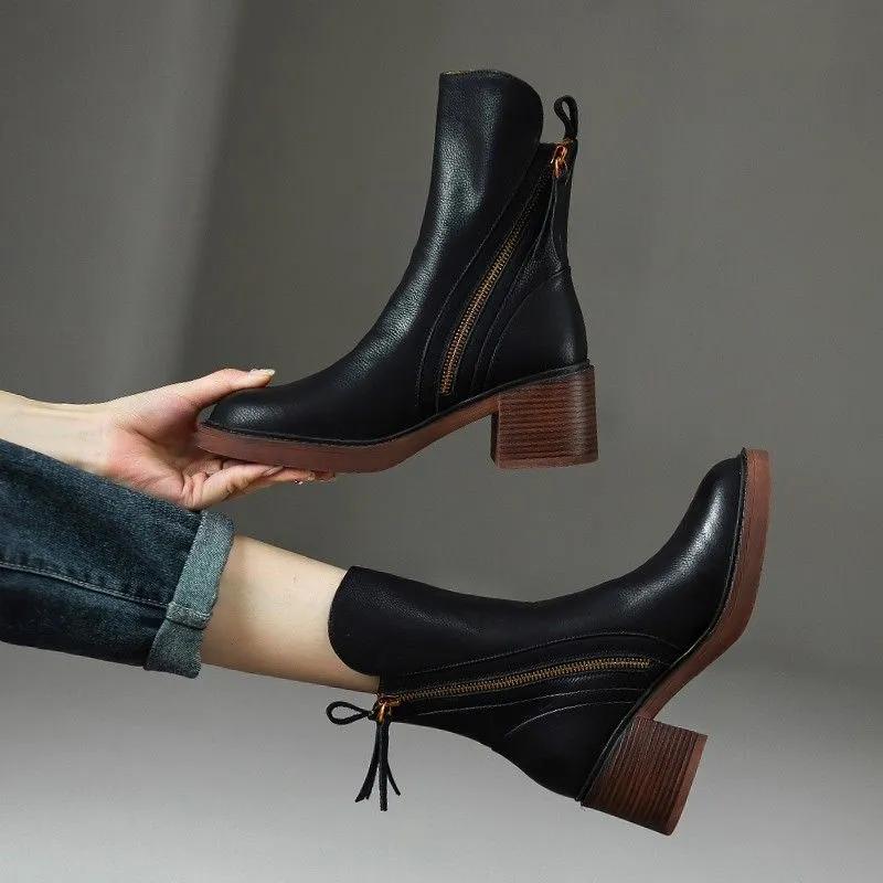 Зимние осенние женские ботинки в стиле ретро, ботинки Martin средней высоты с молнией по бокам, женские ботинки на толстом каблуке