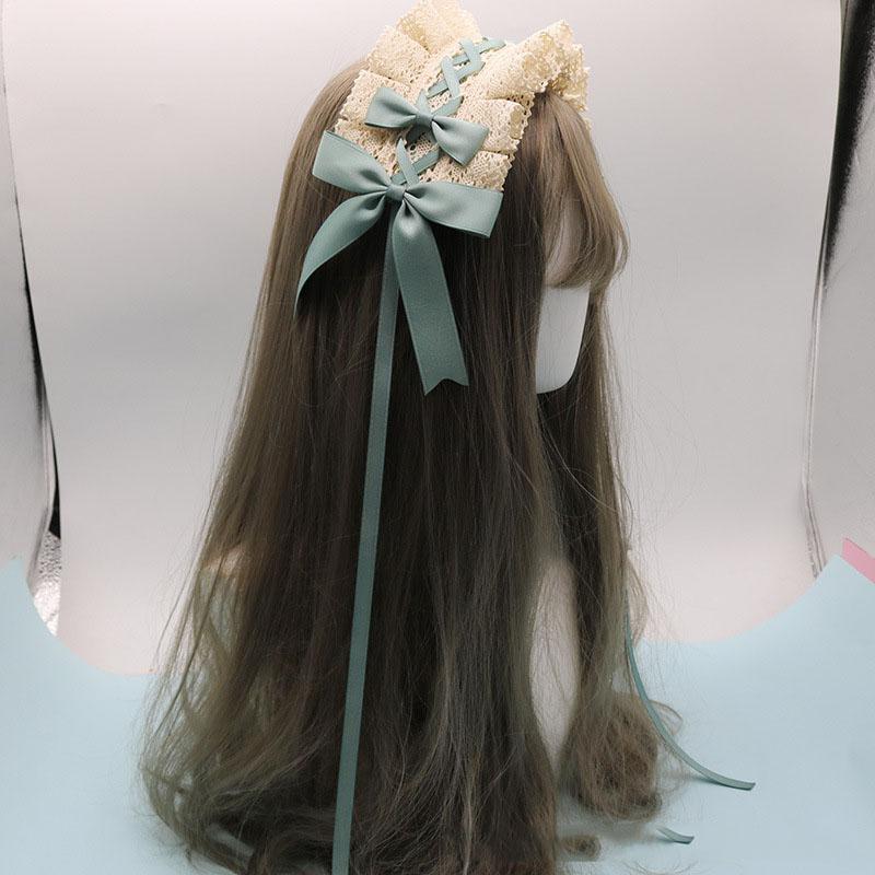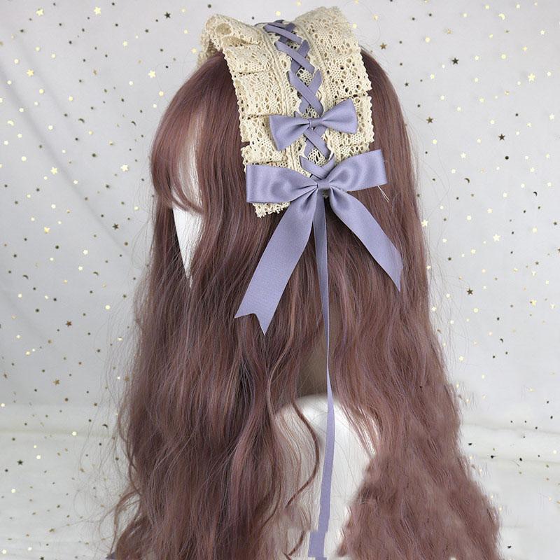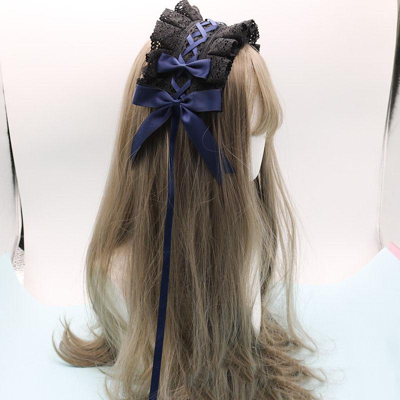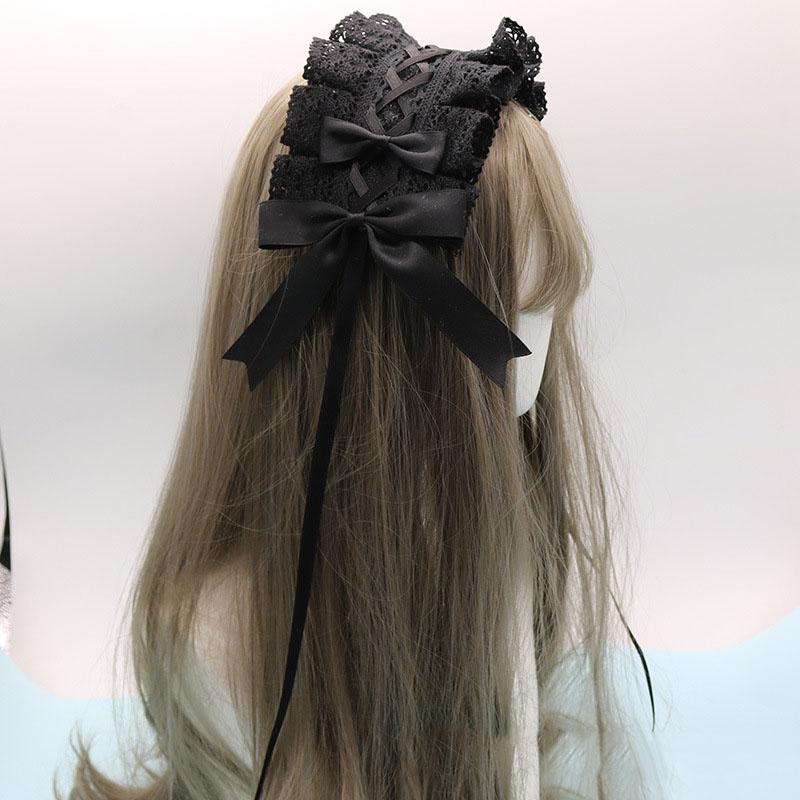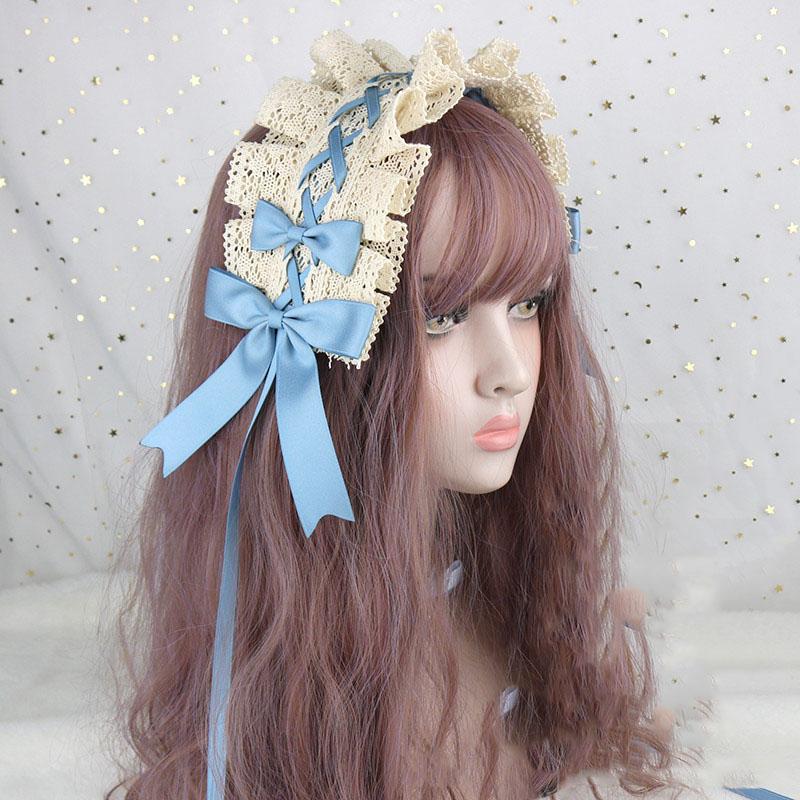 Милый бант, милый обруч для волос в стиле Лолиты с кружевным цветком, аниме-повязка на голову для косплея, головной убор, аксессуар для рук