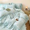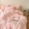 Комплект постельного белья из стираного хлопка из 4 предметов для девочек, пододеяльник с кружевной вышивкой и оборками, комплект из 3 предметов