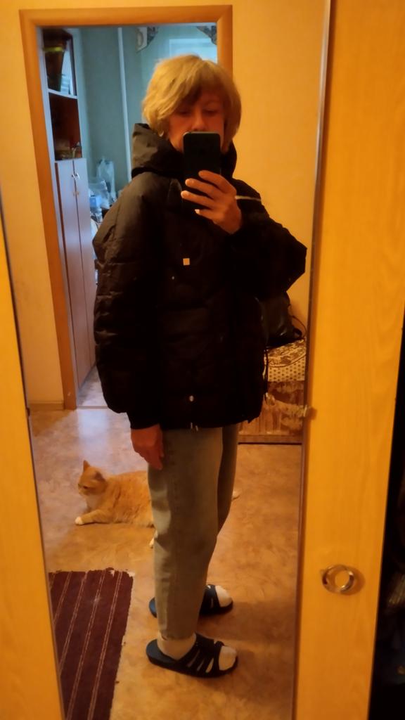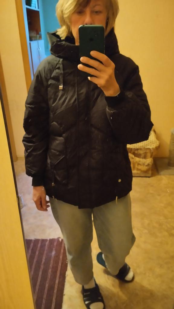Мои параметры 100*80*100, рост 171. Куртку выбрала размер 4XL. Широковата, но если бы взяла меньше размером, были бы короткие рукава. Скорее осень. С блёстками, как заявлено, сзади прошивка очень нравится ❤️. Обошлась в 1400.