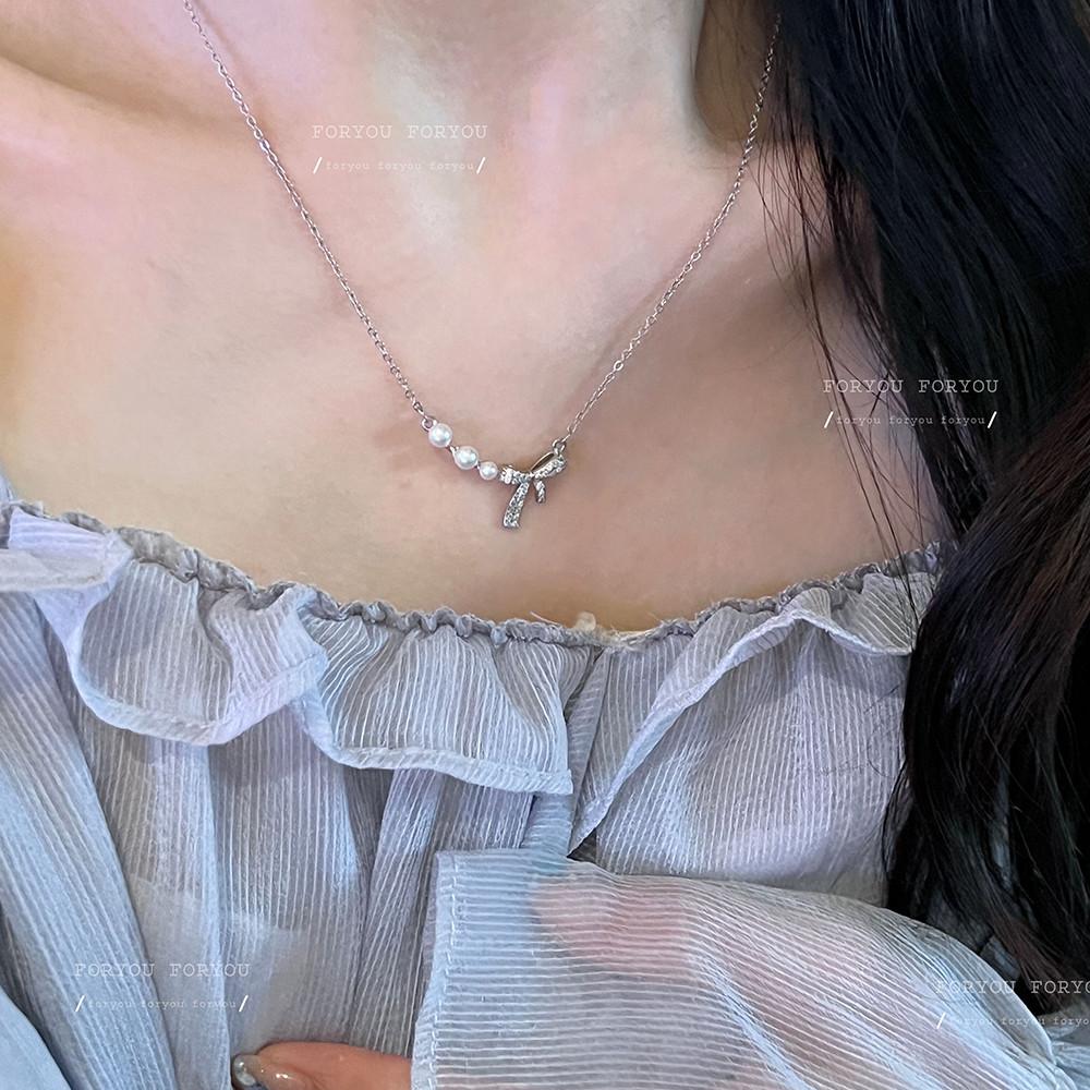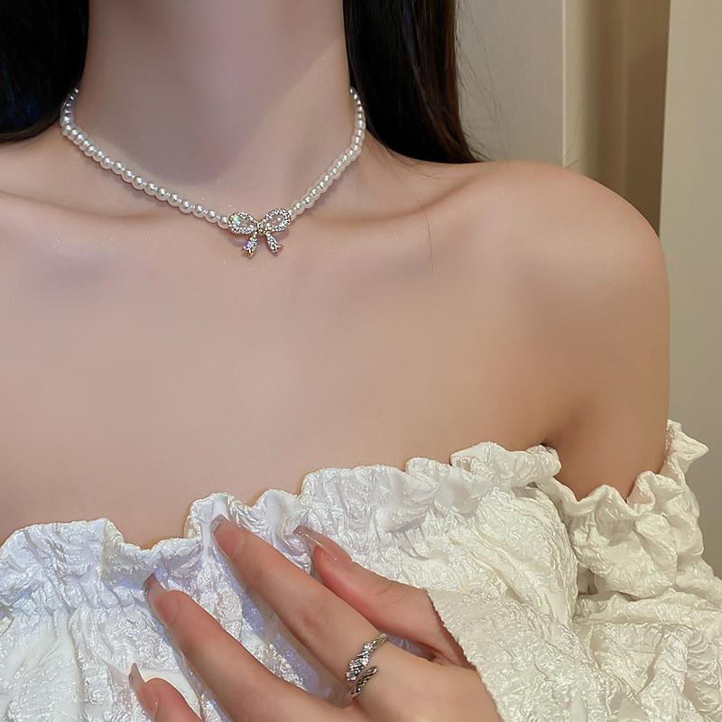 17KM Модное ожерелье с бантом в виде цветка и сердца, циркон, искусственный жемчуг, цепочка на ключицу, колье для женщин, ювелирные аксессуары