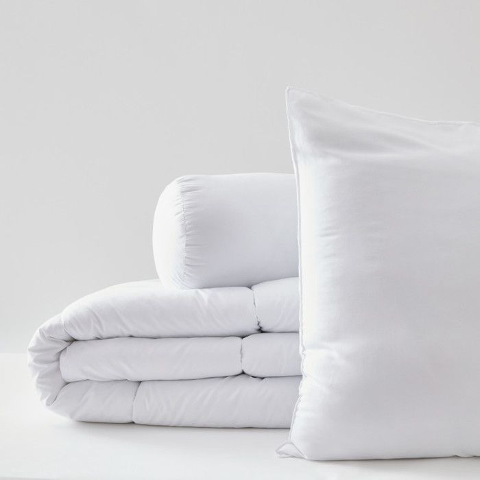 Pack Couette Blanrêve 140 x 200 cm + oreiller 60 x 60 + polochon 90 Gamme "Douceur" traité Anti Acarien Soft & care
