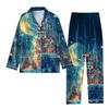 Детский рождественский костюм из 2 предметов с принтом, топ с длинными рукавами и застежкой на пуговицы, широкие брюки, комплект пижамы, домашний повседневный костюм