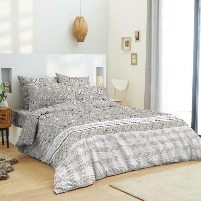 Комплект двусторонних пододеяльников для кровати 140 x 190 см. Серо-коричневый с цветочным принтом.