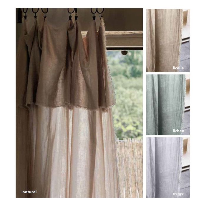 Rideau ajustable + 10 anneaux pince "Milos" 140 x 280 cm Mousseline de coton - Naturel
