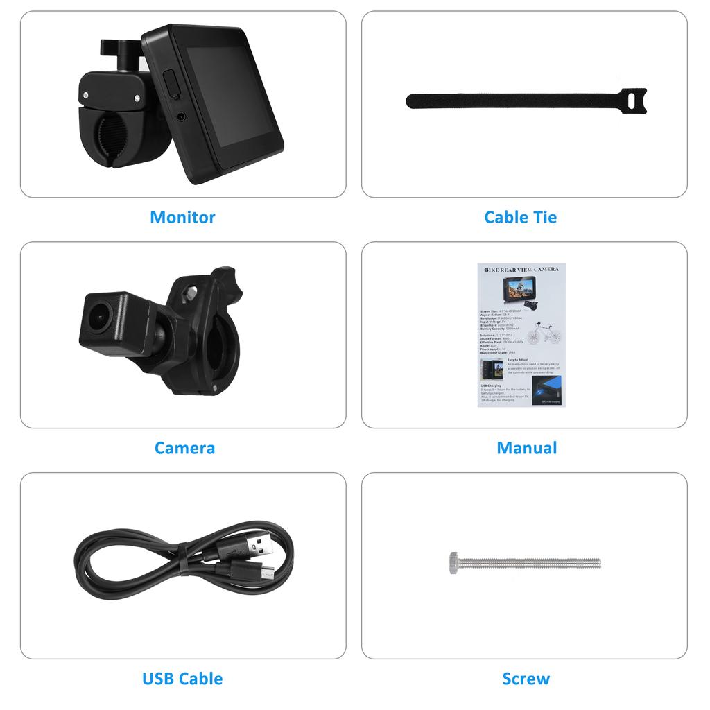 Простая установка и регулируемый угол обзора: Велосипедная камера проста в установке. Просто подключите кабель и зафиксируйте положение камеры и монитора.. Кронштейн может вращаться на 360 градусов, что позволяет регулировать угол для наилучшего обзора.
