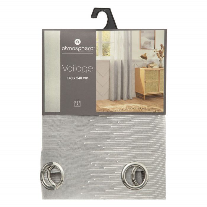 Voilage fines rayures "Liah" tamisant 140 x 240 cm Atmosphera - Gris