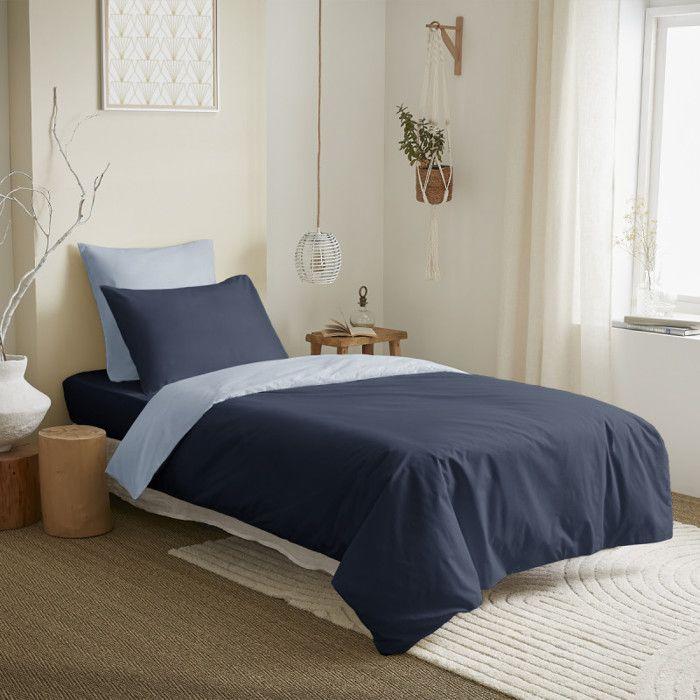 Pack complet 4 pièces Marine/Bleu Ciel réversible housse de couette pour lit 90 x 190 cm