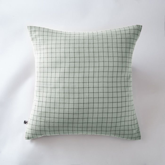 Taie d'oreiller Tissé-teint petits carreaux Déco "Gaïa Mix" 60 x 60 cm & 50 x 70 cm "Gaze de Coton" - Gaïa Mix Eucalyptus - 60 x 60 — купить товар онлайн с бесплатной доставкой до всему миру!