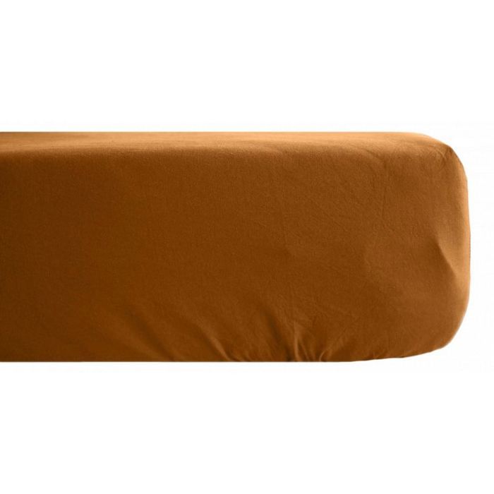 Простыня на резинке Palace чистый хлопок стиранный крашеный 63 нити/см² Южный ветер - Palace Терракотовый - 180 x 200 см бортик 35 см