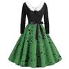 Женское повседневное и модное платье с длинными рукавами, V-образным вырезом и принтом в горошек, застегивающееся на молнию