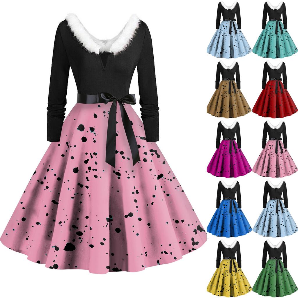 Женское повседневное и модное платье с длинными рукавами, V-образным вырезом и принтом в горошек, застегивающееся на молнию — купить товар онлайн с бесплатной доставкой по всему миру!