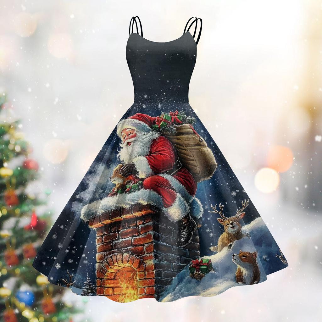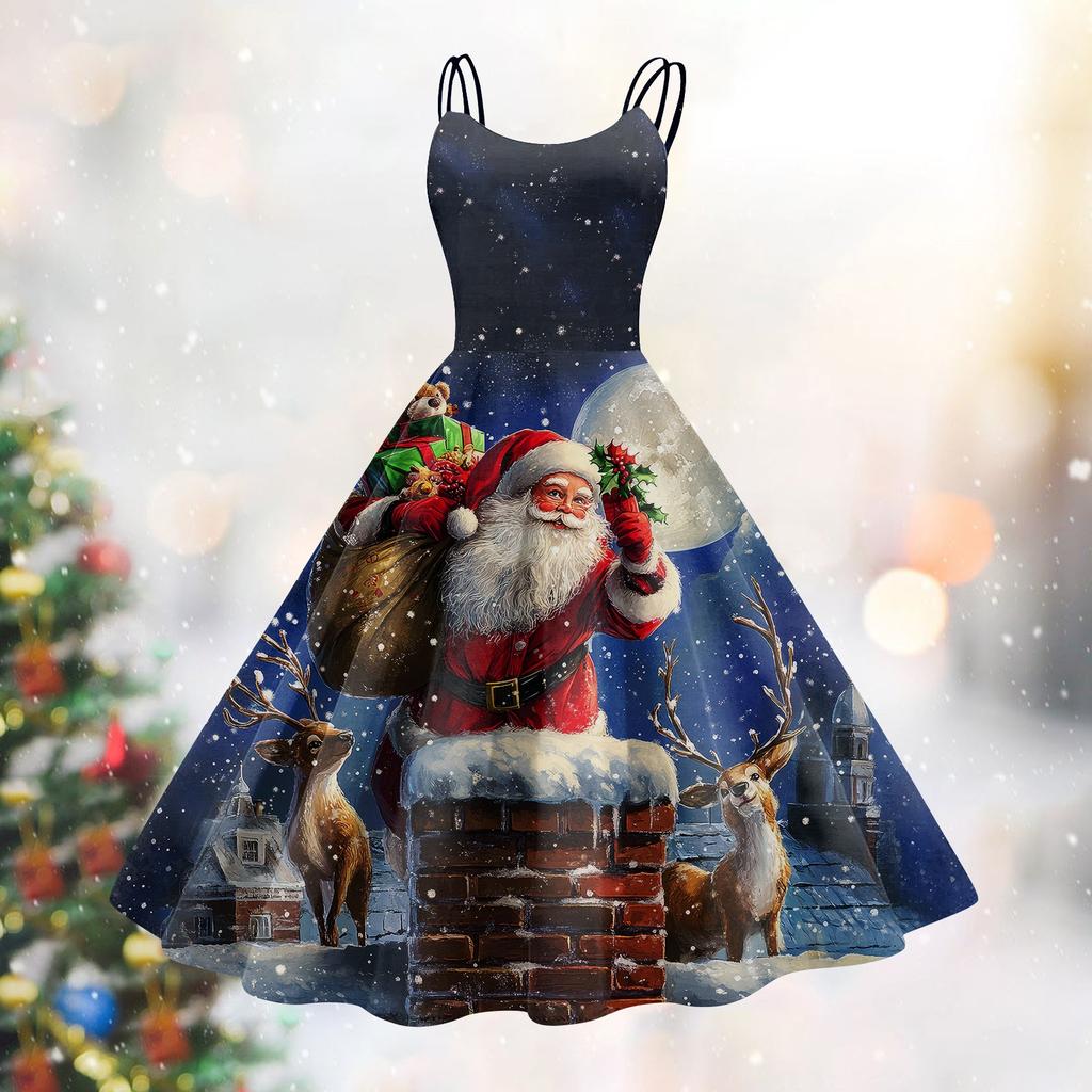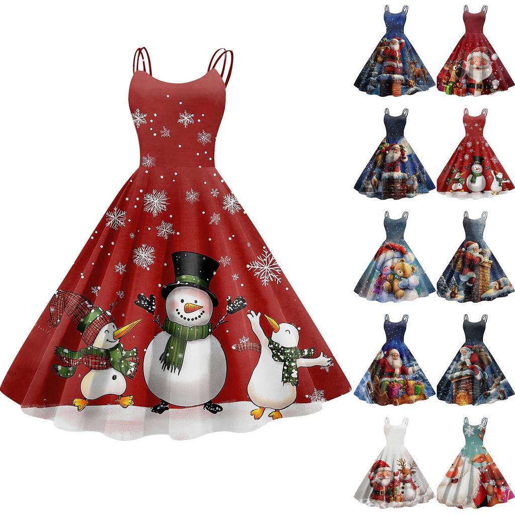 Женское модное сексуальное коктейльное платье без бретелек с рождественским принтом в стиле панк, винтажное платье.