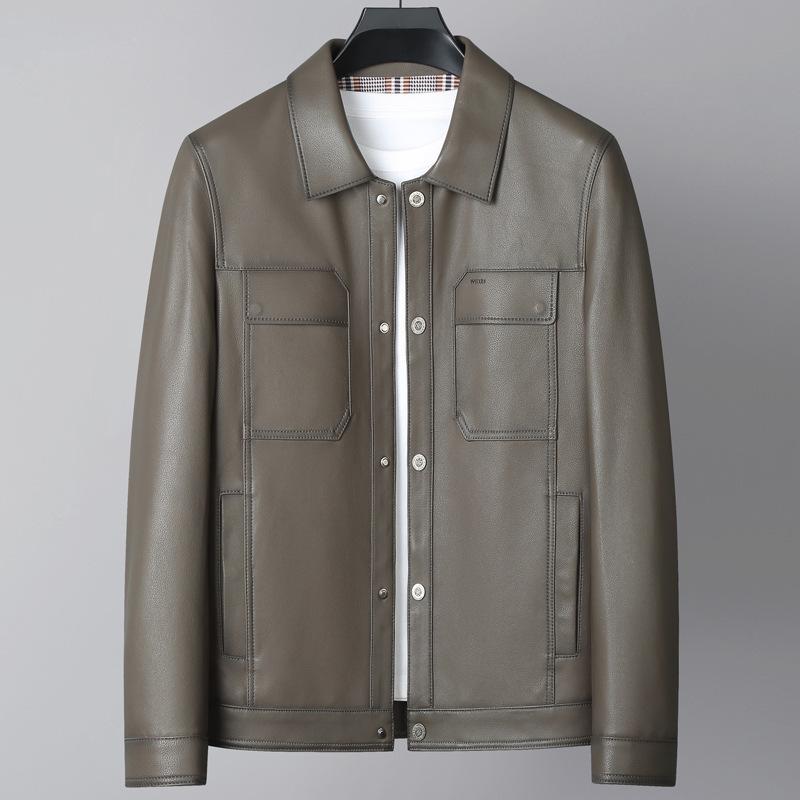 Кожаная куртка Кожаная куртка с лацканами Мужская куртка из овчины Тонкая кожаная куртка High Sense