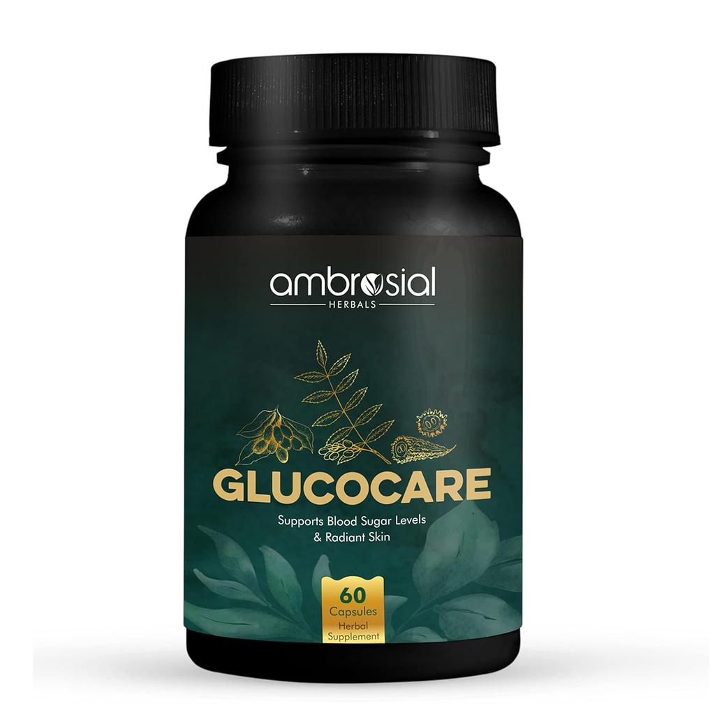 Таблетки для контроля уровня сахара в крови AMBROSIAL Glucocare, травяная формула премиум-класса с карела джамун и нимом для лечения диабета (Упаковка 1-60 капсул)