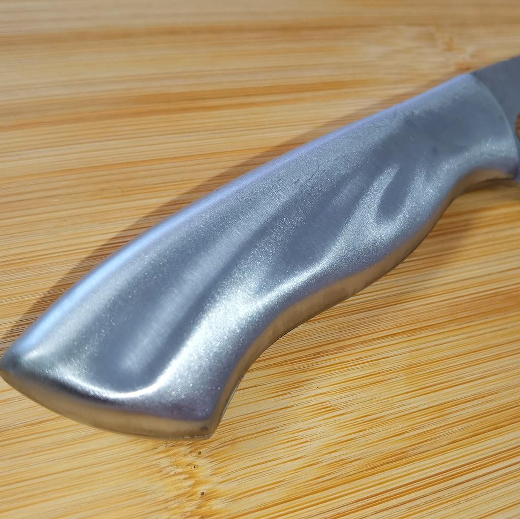 Универсальный шеф-нож от бренда IKKNIFE🔪 Беру на Joom уже не первый нож и всегда остаюсь довольной, особенно качеством их заточки! Брала уже такие ножи ни один раз, так как муж занимается мясом, и именно подобные ножи себя зарекомендовали в качестве лучших в свеживании и разделке мяса. 🥩 Нож состоит из лезвия и рукоятки средней длины. Заточен остро.Материал ручки и лезвия - нержавеющая сталь. В отличии от деревянной ручки, эта легко моется и на ней не скапливаются микробы. 🔥 Доставка до Алтайского края месяц живым треком. Приходит в картонной коробке с пластиковым наконечником и в пакетике. Внутри сам нож + прочный чехол из коричневой кожи ПУ. На чехле есть хлястик, чтобы одевать на ремень. 👌 Мне понравился! Очень хороший нож, отлично подойдёт для мяса, рыбы, овощей и фруктов! 👍
