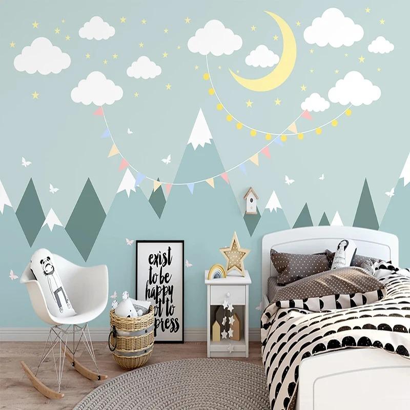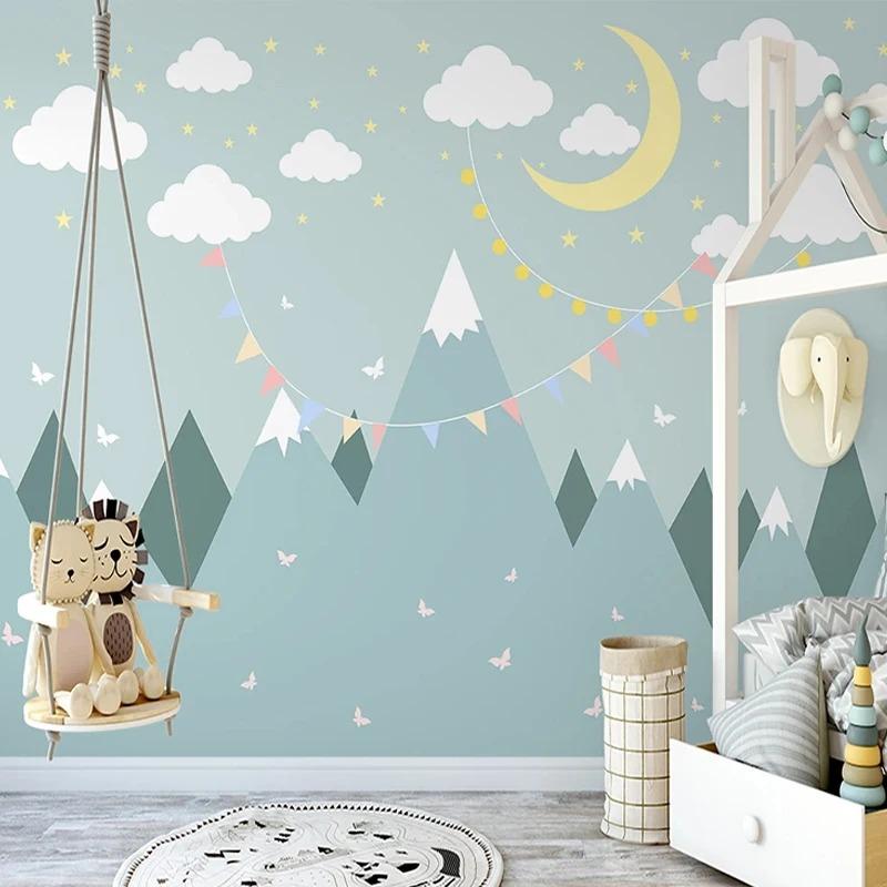 Фотообои Nordic Simple Hand Painted 3D Moon Starry Sky Mural Детская спальня Фон Настенный декор Обои