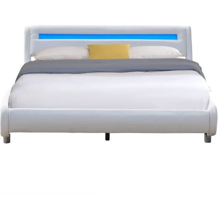 Lit gina pour matelas 140x190 - Sommier Tte de Lit Incurvee Couleur BLANC Pieds en 5 cm - 2 x 13 Lattes - re