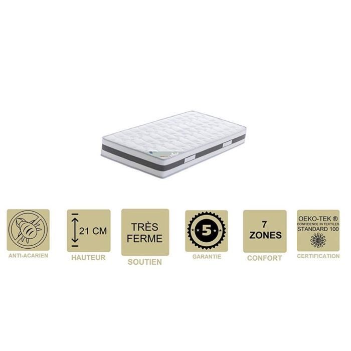 Lot de 2 Matelas Mémoire de Forme 62 Kg-m3 90x190 x 21 cm Très Ferme + 2 Oreillers Visco - 7 Zones de Confort - Noyau Aertech+ 35