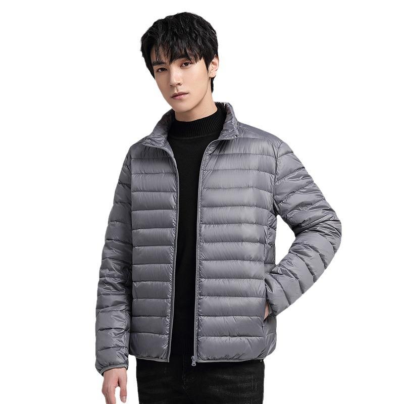 Зимняя белая утиная пуховая легкая куртка мужская теплая однотонная мужская куртка повседневная стойка воротник мужская