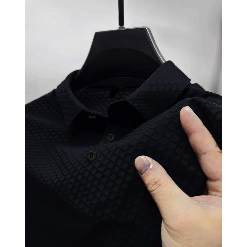 Летняя мужская быстросохнущая рубашка-поло из ледяного шелка с воротником-стойкой