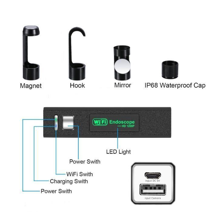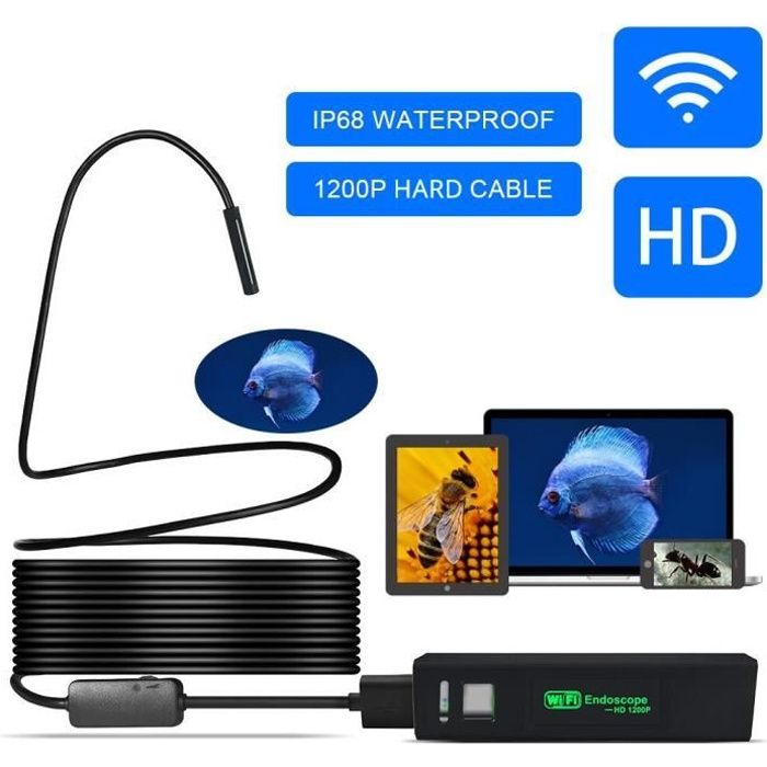 WiFi Endoscope Caméras d'inspection5M, HD2,0Mégapixels IP67 Etanche Caméra Serpent avec6LED,Compatible avec Android, iOS iphone