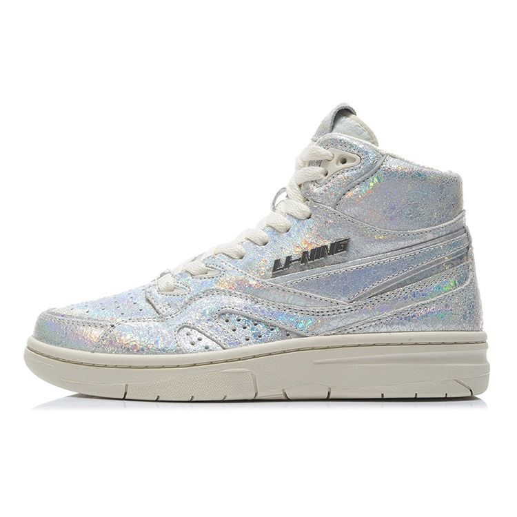 Li Ning 937 Deluxe Hi Удобные повседневные высокие ретро баскетбольные кроссовки женские кроссовки серебристые AGBR080-2