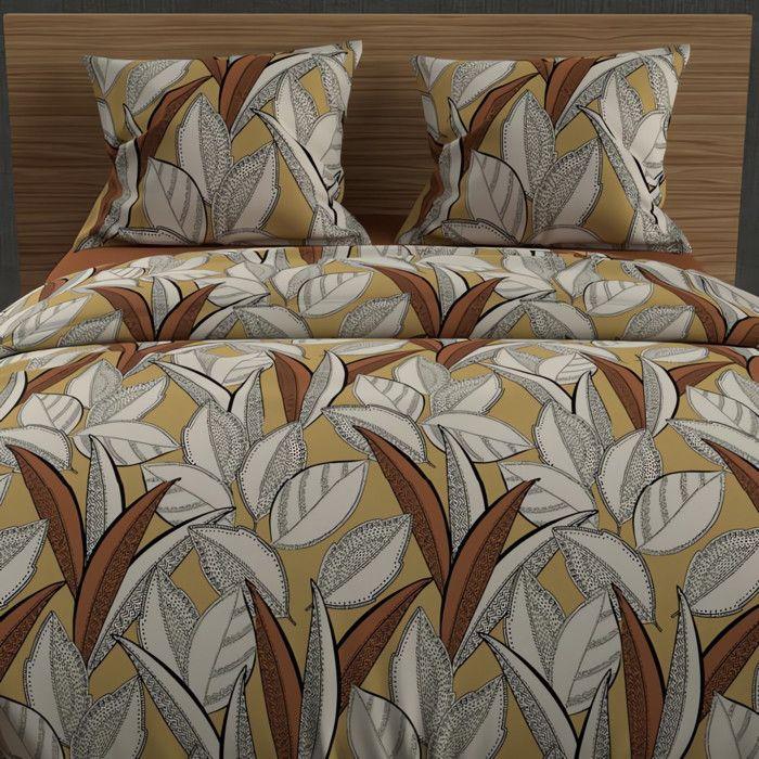 Parure housse de couette en coton 57 fils 260x240 cm TOGO moutarde, par Soleil d'ocre