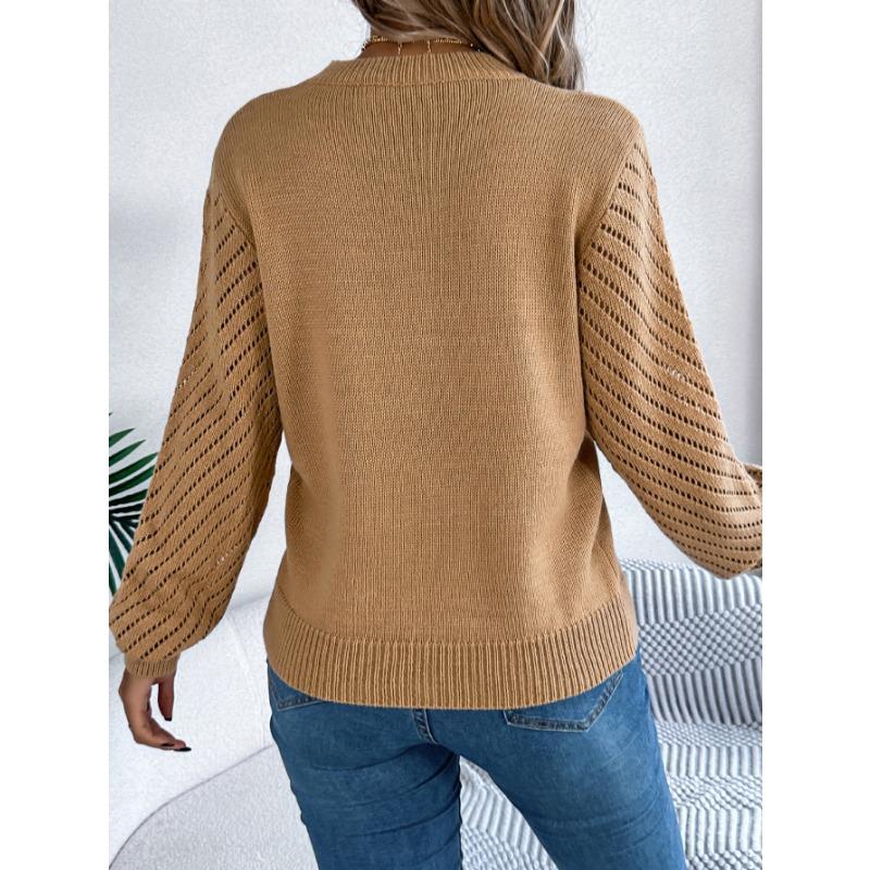 Женский осенне-зимний повседневный однотонный свитер с круглым вырезом и рукавами-фонариками