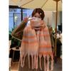 Клетчатый шарф женский корейский атмосферный теплый новый сухой розовый осенне-зимний белый мягкий бахромчатый платок-шарф